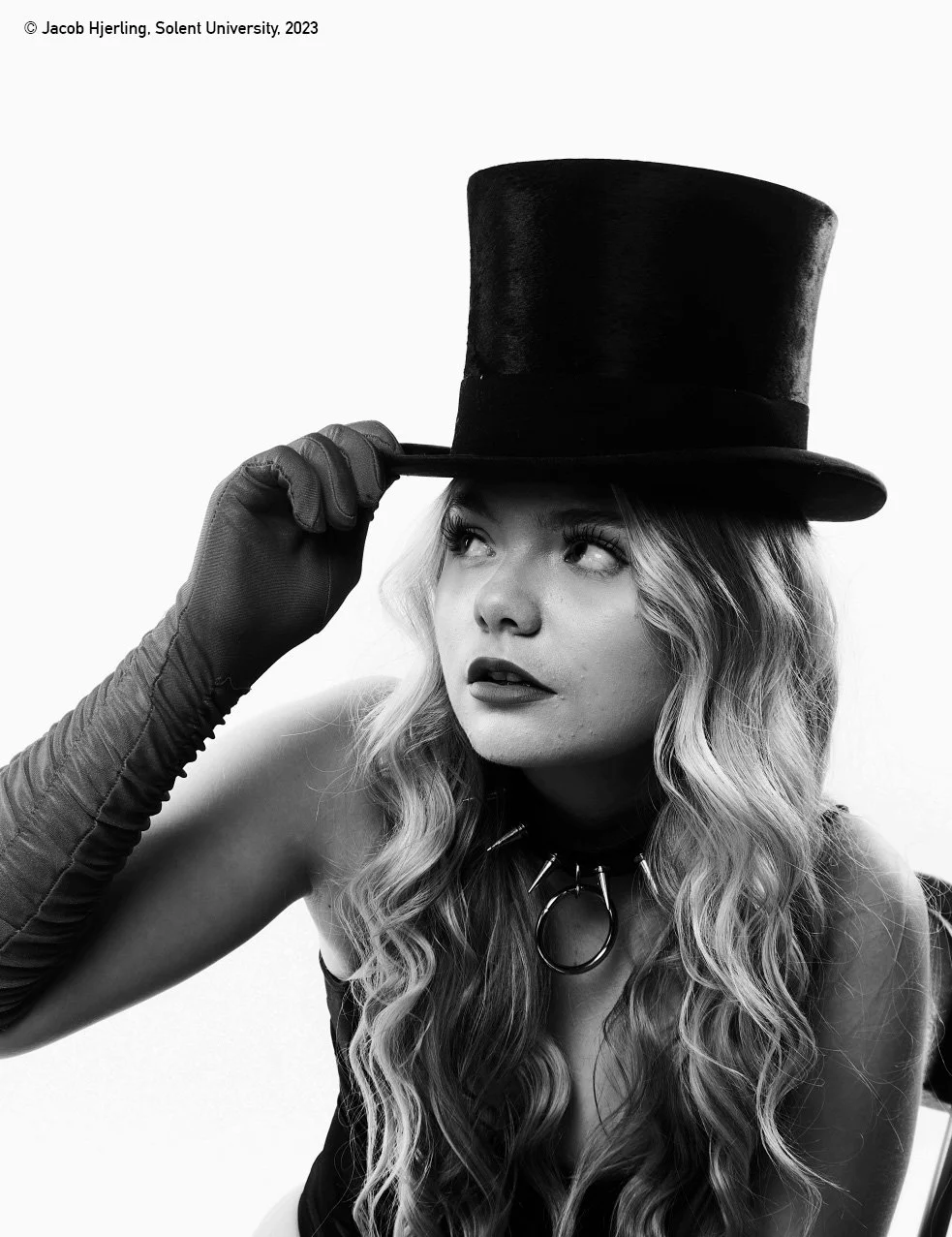 Each student researched their photographer’s ideas, technical approach and style, while learning about image construction techniques. Then the students created a series of their own photographs in the style of their chosen photographer. These weren’t recreations of existing images. Instead, the students had to create new concepts appropriate to their photographer and shoot them as authentically as possible.”